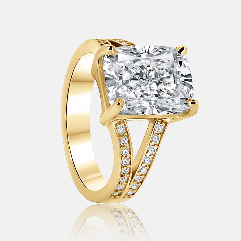 This 14K yellow gold split shank engagement ring is for those who love jewelry with impact—bold, refined, and crafted to stand the test of time.
